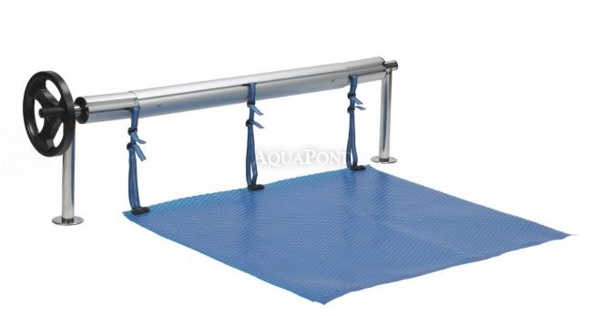 Aufrollvorrichtung ist konzipiert für bequemen Auf-und Entrollen von Solar-Luftpolsterfolien von der Pooloberfläche. Ständer ist gefertigt aus poliertem Edelstahl, und Teleskopstangen Roller ist im Design aus eloxiertem Aluminium. Die Vorrichtung ist auf dem Rand des Beckens platziert. Montage der Solarfolie auf der Aufrollvorrichtung wird mit Streifen und Clips (im Lieferumfang enthalten).