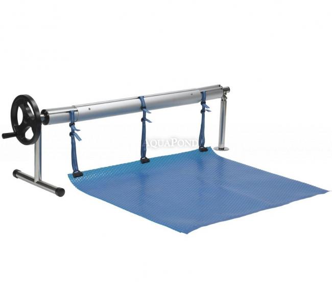 Aufrollvorrichtung ist konzipiert für bequemen Auf-und Entrollen von Solar-Luftpolsterfolien von der Pooloberfläche. Ständer ist gefertigt aus poliertem Edelstahl, und Teleskopstangen Roller ist im Design aus eloxiertem Aluminium. Die Vorrichtung ist auf dem Rand des Beckens platziert. Montage der Solarfolie auf der Aufrollvorrichtung wird mit Streifen und Clips (im Lieferumfang enthalten).
