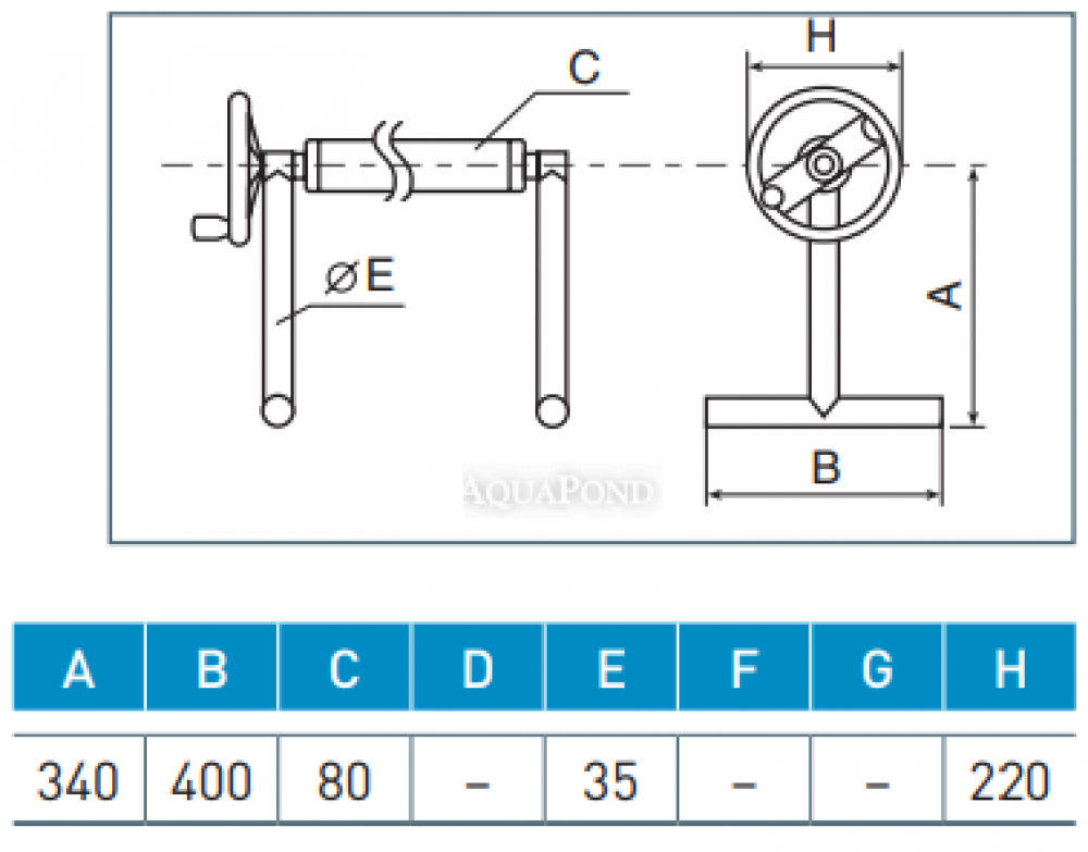 Aufrollvorrichtung ist konzipiert für bequemen Auf-und Entrollen von Solar-Luftpolsterfolien von der Pooloberfläche. Ständer ist gefertigt aus poliertem Edelstahl, und Teleskopstangen Roller ist im Design aus eloxiertem Aluminium. Die Vorrichtung ist auf dem Rand des Beckens platziert. Montage der Solarfolie auf der Aufrollvorrichtung wird mit Streifen und Clips (im Lieferumfang enthalten).