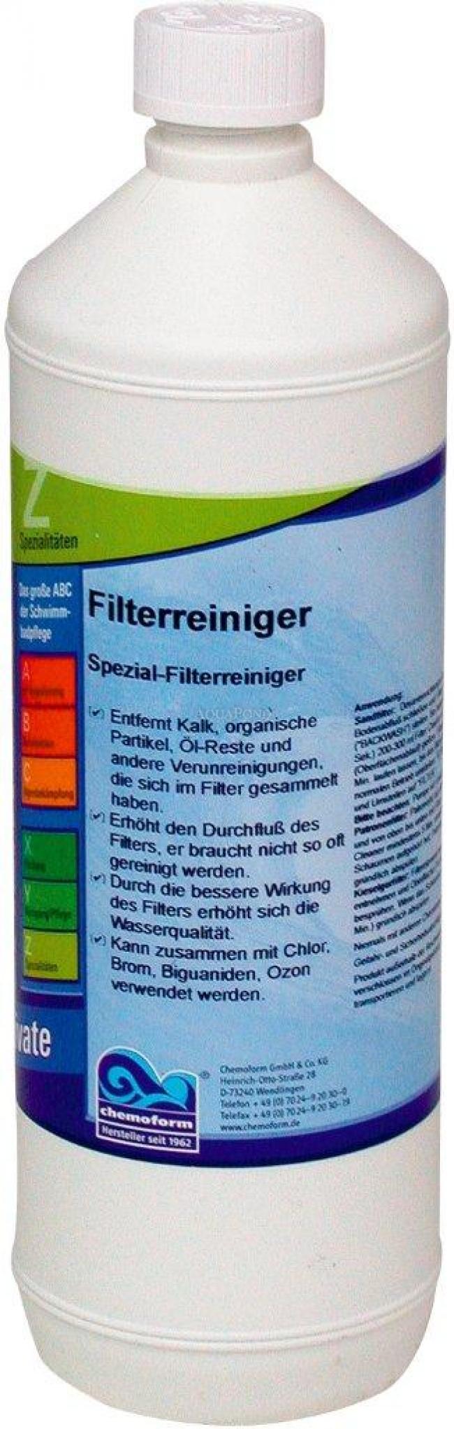 Filter Cleaner ist ein flüssiges Mittel, das im Filter aufgefangene Kalk- und organische Partikeln, Ölreste und andere Verschmutzungen beseitigt