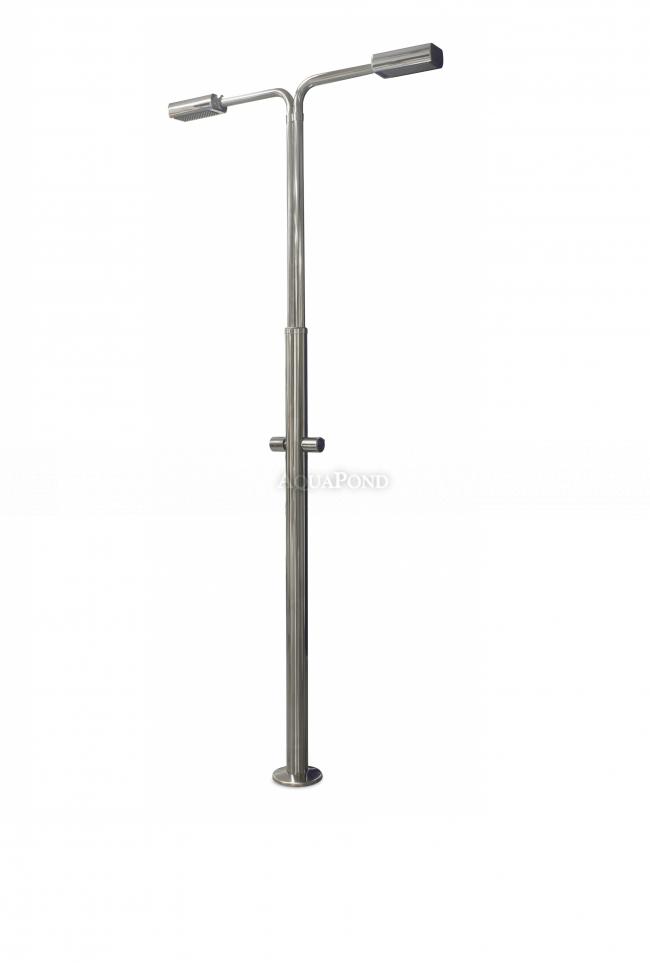 Aus poliertem Edelstahl V2A mit einem Rohrdurchmesser von 43 mm. Der Duschkopf besteht aus verchromten Kunststoff in einem modernem Design. Dieser Dusche kann entweder kaltes oder warmes Wasser aus einem Durchlauferhitzer oder Boiler zugeführt werden. Die Lieferzeit beträgt 2-3 Wochen.