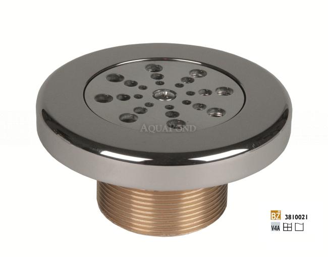 Die Düse 3810021 besteht aus säurebeständigem Edelstahl AISI 316L und Bronze. Dank der speziellen Konstruktion der rotierenden Düse kann der Durchfluss des Hydromassagewassers durch Öffnen oder Schließen der Öffnungen reguliert werden.