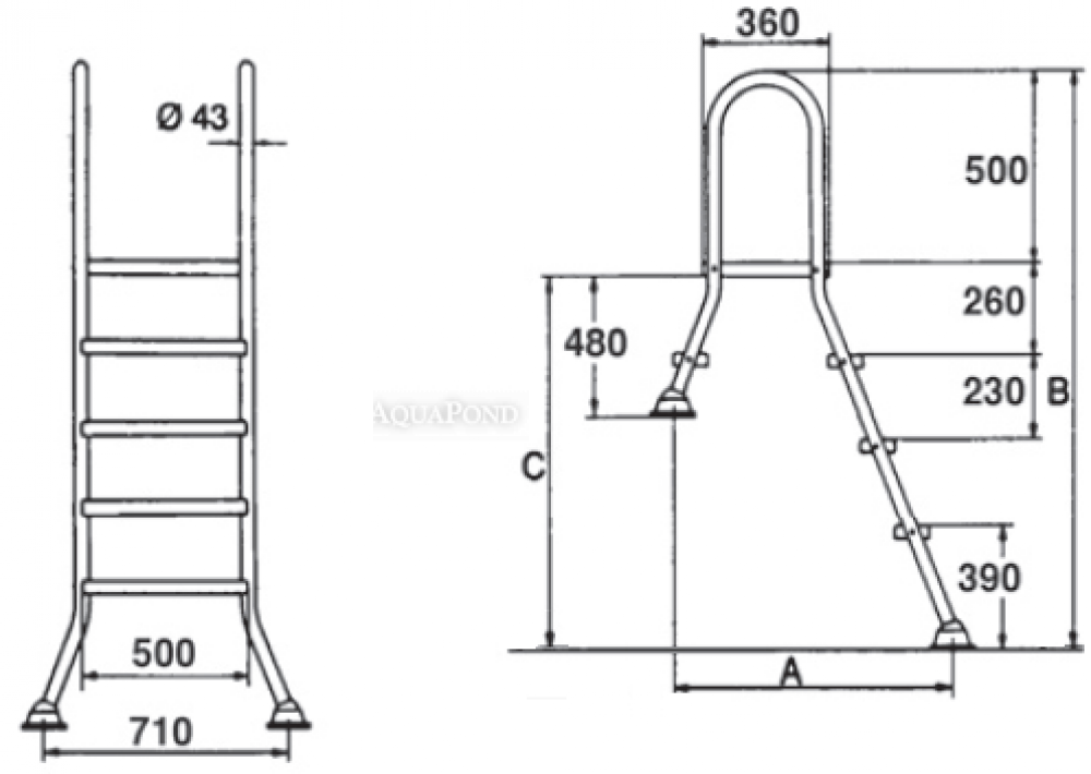 Accessoires, die einen bequemen und entspannten Ein- und Ausstieg aus dem Pool garantieren. Die Leitern sind für in den Boden eingelassene Pools konzipiert. Der Griff der Poolleiter und die Stufen bestehen aus poliertem Edelstahl AISI 304. Verwenden Sie zum Reinigen von Edelstahlmaterialien speziell entwickelte Produkte. Verwenden Sie auf keinen Fall Produkte, die einen Chlor- oder Säureanteil enthalten. Die Stufen sind mit Rutschhemmung versehen. Fußschritte. Jede Leiter ist mit einer bedienbaren Verbindung zur Beckenwand ausgestattet. Der Anker wird mit Gehäuse und Klemme zur Erdung geliefert.