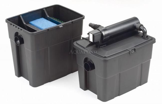 Anschlussfertig und komplett sorgt dieses kompakte Durchlauffilter-Set für garantiert klares, gesundes und sauberes Wasser in Ihrem Teich. Das integrierte UVC-Vorklärgerät befreit effektiv von Schwebealgen und Trübstoffen. Unterstützend dabei wirken die 4 unterschiedlichen Filtermedien des Mehrkammerfilters - Japanmatte, grober und feiner Filterschwamm und Bioflächenelement – sowie 2 strömungsregulierende Trennwände!
