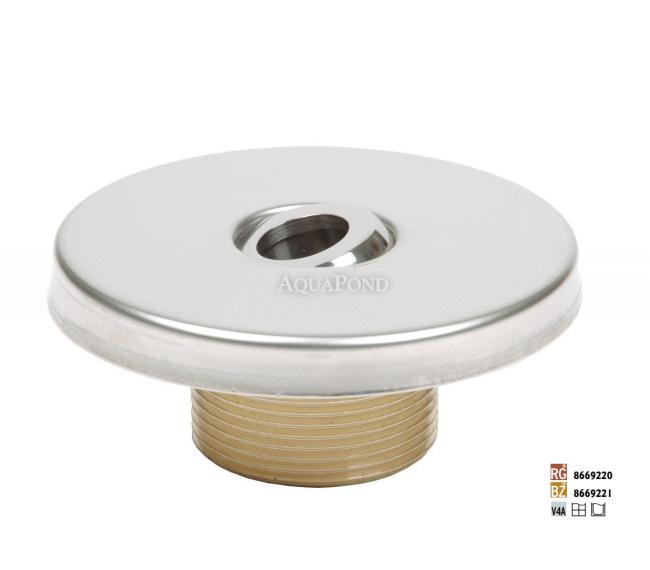 Die Düse ist mit einem 1 1/2"-Gewinde ausgestattet, das eine zuverlässige und einfache Anbindung an bestehende Hydromassagesysteme ermöglicht. Das verwendete Material – meist Edelstahl V4A oder robuster Kunststoff (je nach Ausführung) – ist besonders beständig gegen chloriertes Wasser, UV-Strahlung und mechanische Abnutzung.