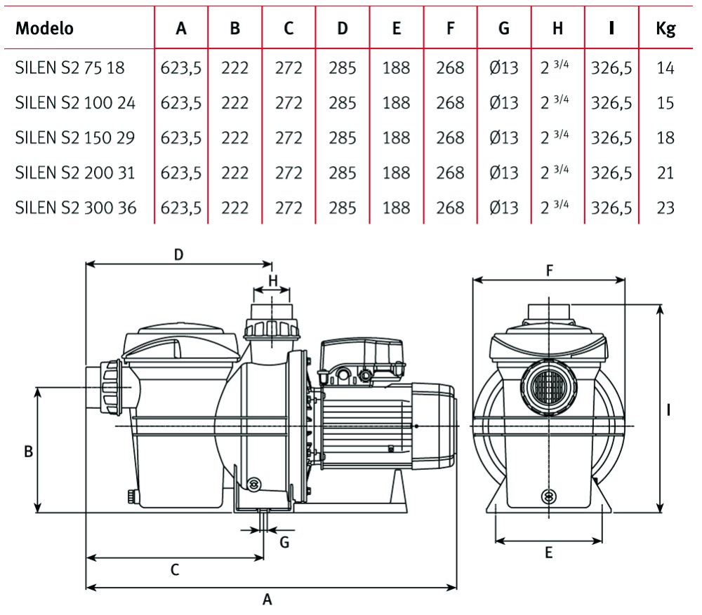 Die Schwimmbadpumpe Silen S2 100 gehört zu den modernen und effizienten Pumpen, die für mittelgroße Schwimmbäder bestimmt sind. Es handelt sich um eine moderne Pumpe, die für ihren leisen Betrieb, ihre lange Lebensdauer und ihre einfache Wartung bekannt ist. Dank präziser Verarbeitung und hochwertiger Materialien ist sie für den Dauerbetrieb unter anspruchsvollen Bedingungen von Schwimmbadsystemen ausgelegt, wo sie einen effektiven Wasserfluss durch den Filterkreislauf gewährleistet. Der Pumpenmotor ist ein asynchroner Motor, der durch einen Außenventilator gekühlt und mit einem Überhitzungsschutz ausgestattet ist, der Überhitzung verhindert. Die selbstansaugende Fähigkeit ermöglicht ein einfaches Starten des Systems auch nach längeren Pausen oder nach einem Wasserwechsel im Pool. Die Pumpe verfügt über einen transparenten Deckel für eine einfache visuelle Kontrolle des Filterkorbs, der größere Verschmutzungen wie Blätter oder Insekten auffängt und so das Laufrad vor Beschädigungen schützt. Die Welle ist aus Edelstahl AISI 431 gefertigt und mit einer Graphit-Mechanikdichtung abgedichtet. Diese Pumpen sind so konstruiert, dass sie leise und effizient arbeiten, wobei ihre kompakte Größe eine einfache Platzierung ermöglicht. Trotz ihrer Leistung bleiben sie energieeffizient und geräuscharm, was sie zu einer praktischen Wahl für die meisten Haushaltsinstallationen macht. Ihre Verwendung verbessert die Wasserqualität und trägt zum optimalen Betrieb von Filtersystemen bei, während sie eine einfache Handhabung und Sicherheit im Betrieb gewährleisten.