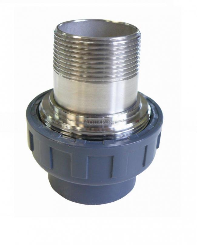 PVC Fitting - Hollender 50 x 1 1/2" ext. Edelstahl, DN=50 mm x 1 1/2", Kleben / Außengewinde