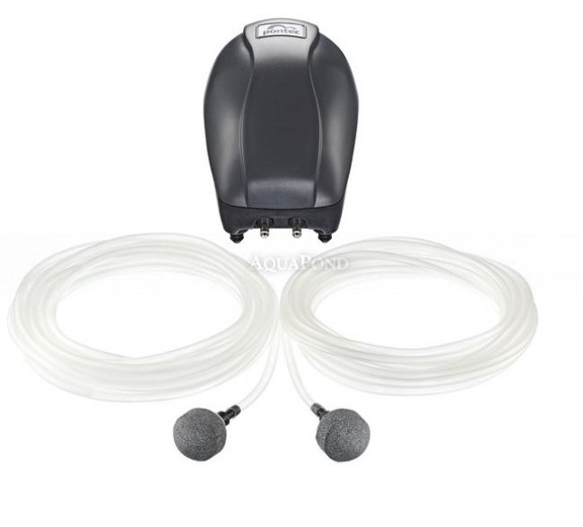 Einfach zu installierendes Luftpumpen-Komplettset für zuverlässige Sauerstoffversorgung des Teichwassers.